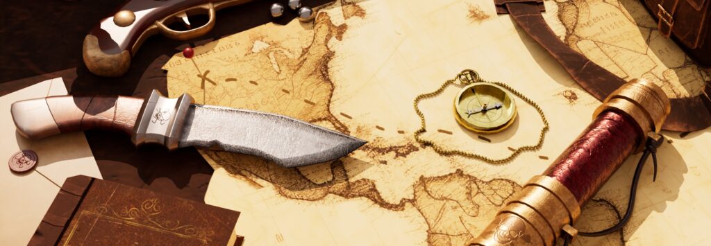 This work tells the story of life inside a Captain’s Quarters during the 17th-18th century. The room is filled with traces of years spent at sea. Weapons hang on the walls, alongside reminders of loved ones never forgotten. On the desk, preparations for the next treasure hunt can be seen, ready to set sail. And so, day after day, life goes on.